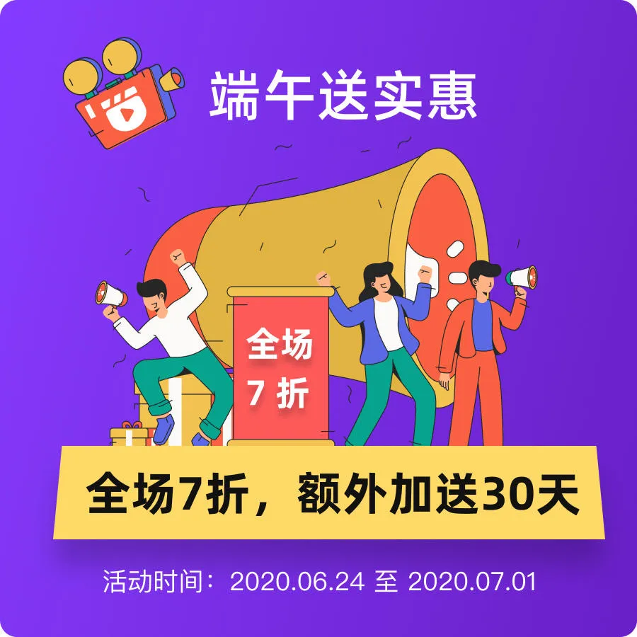 即日起购买90天~720天会员,限时7折。原价360元的包年VIP,仅需252元。原价120元的季度VIP,仅需80元。