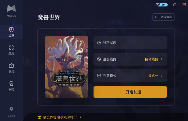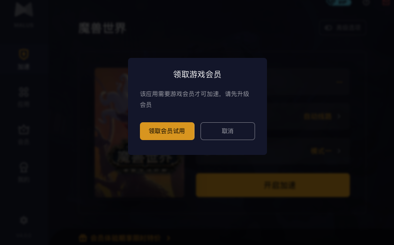 新用户应用库内选择任意游戏进行加速,首次可领取会员试用。
